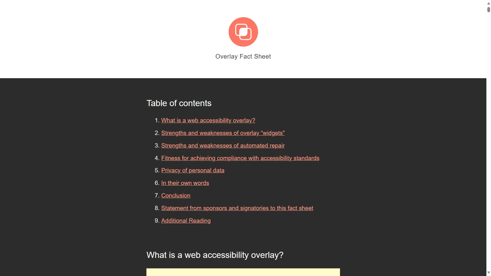 There’s a great factsheet about it at overlayfactsheet.com, which also includes quotes of support from accessibility experts all over