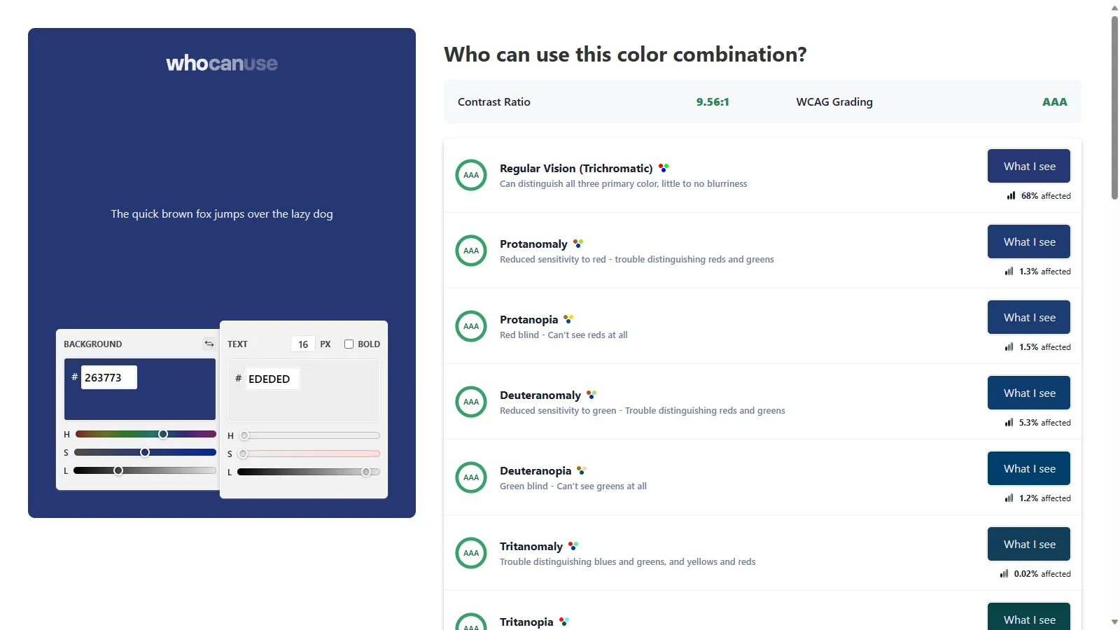 To help determine the colour contrast, there’s a great tool Who Can Use, which not only calculates the difference between 2 colours but simulates several different vision impairments and compares those too